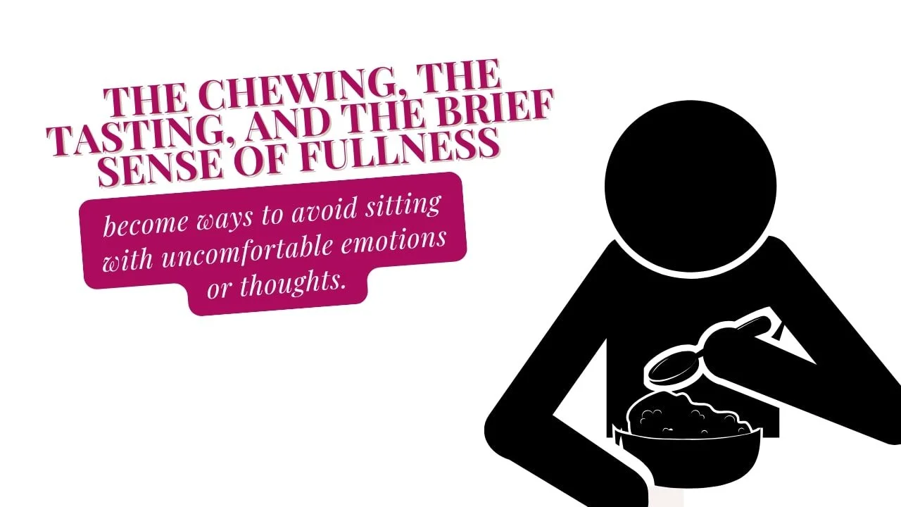 For some, food fills what feels like an “empty bucket,” a lack of love, joy, connection, or fulfillment. For others, binge eating is about numbing completely, while emotional eating might simply look like distraction. The chewing, the tasting, and the brief sense of fullness become ways to avoid sitting with uncomfortable emotions or thoughts.