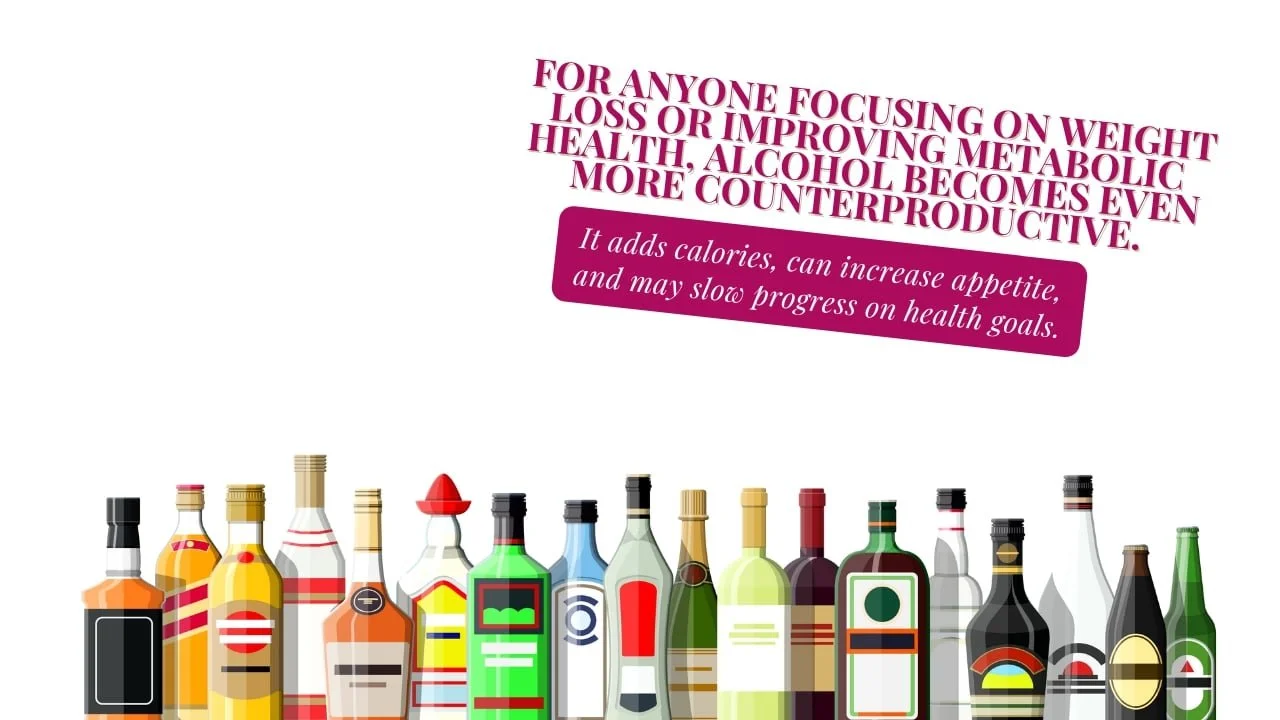 Research continues to shift on alcohol and health. For years, moderate drinking was thought to offer some health benefits, especially for the heart. Now, we’re seeing more evidence that alcohol may not benefit health at all—and in some cases, even small amounts may have negative effects. For anyone focusing on weight loss or improving metabolic health, alcohol becomes even more counterproductive. It adds calories, can increase appetite, and may slow progress on health goals.