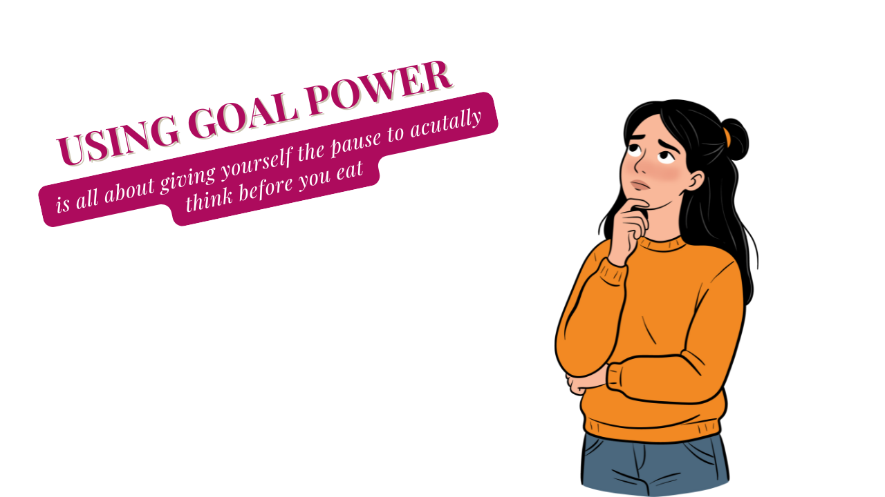 Using goal power is all about giving yourself the pause to actually think before you eat. So if you’re tempted by a snack, take a moment and ask yourself, “Okay, how is this going to make me feel afterward? Why did I decide not to eat this in the first place?” This simple pause can make a huge difference. And it’s not about perfection—you can even give yourself permission to have the treat, like a few chips, while still staying in the driver’s seat. The key is portioning it out thoughtfully or putting it somewhere out of reach, so you’re choosing intentionally rather than just reacting. Over time, this habit of checking in with your goals and feelings builds a real sense of agency around food.