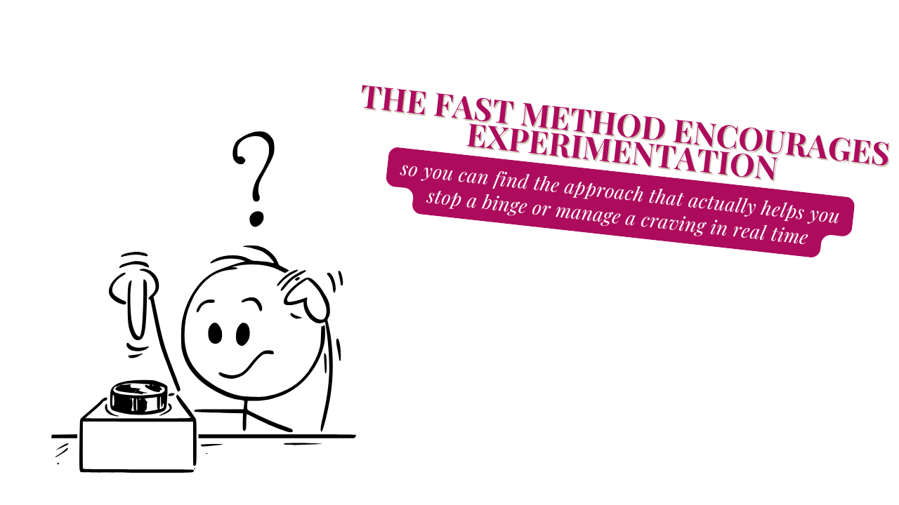 T is for Test—try different tactics to see what works best for you. Not every strategy works for everyone, so FAST encourages experimentation. This way, you can find the approaches that actually help you stop a binge or manage cravings in real time.