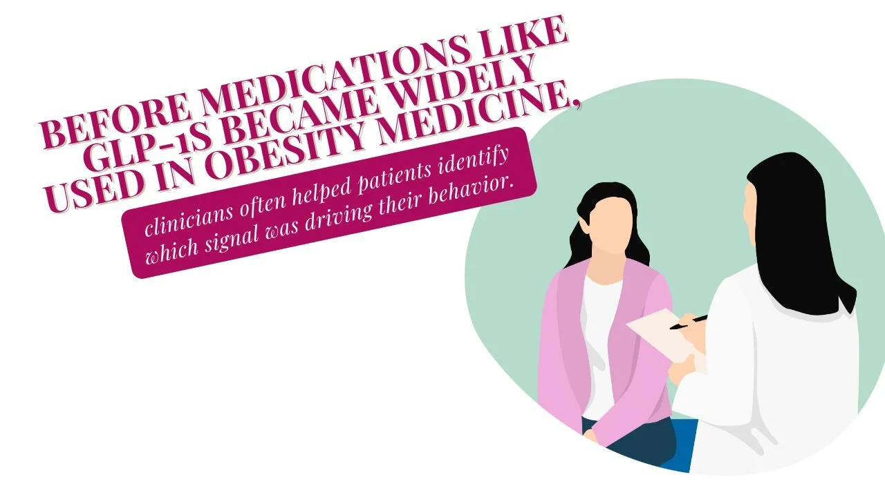Before medications like GLP-1s became widely used in obesity medicine, clinicians often helped patients identify which signal was driving their behavior. Many felt frustrated because they weren’t necessarily overeating or constantly hungry, yet weight management still felt like an uphill battle. One effective approach was simply observing eating patterns over time—like running a small experiment. Patients noted when hunger appeared, whether meals led to lasting fullness, or if certain foods caused energy dips. These observations often revealed patterns that weren’t obvious at first.