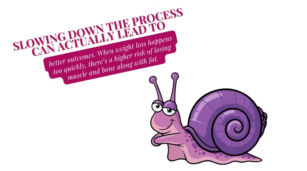 Slowing down the process can actually lead to better outcomes. When weight loss happens too quickly, there’s a higher risk of losing muscle and bone along with fat. That’s something to avoid, especially for women in perimenopause or postmenopause who may already be at risk for bone loss. Taking a steady, gradual approach helps protect overall health while still supporting weight loss.